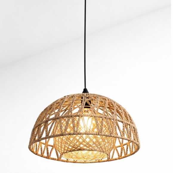 Suspension artisanale en rotin tressé
